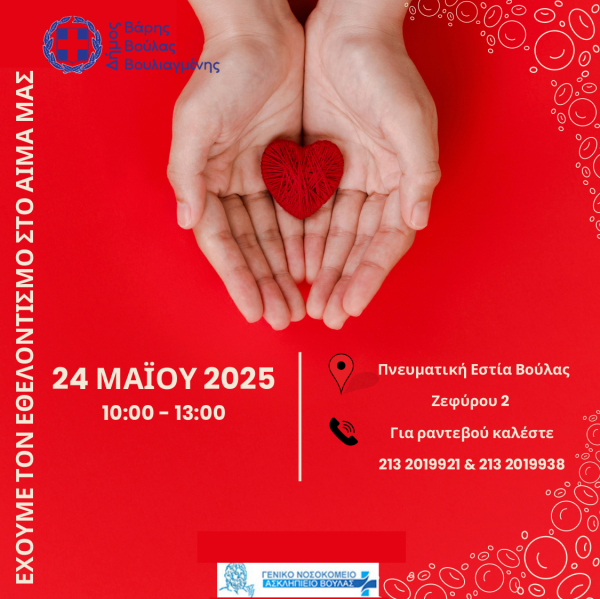 Ο Δήμος Βάρης Βούλας Βουλιαγμένης σου δίνει την ευκαιρία να γίνεις ο ήρωας της καθημερινότητας. Όχι με λόγια. Με πράξη. Με μία φιάλη αίμα. Μόλις 10 λεπτά από το χρόνο σου.